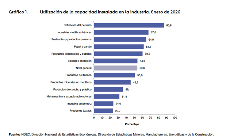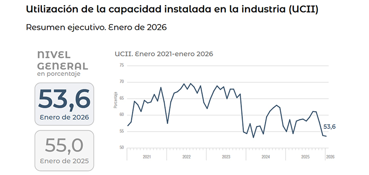 INDUSTRIAS: en enero de 2026 la capacidad instalada se ubicó en apenas 53,6%